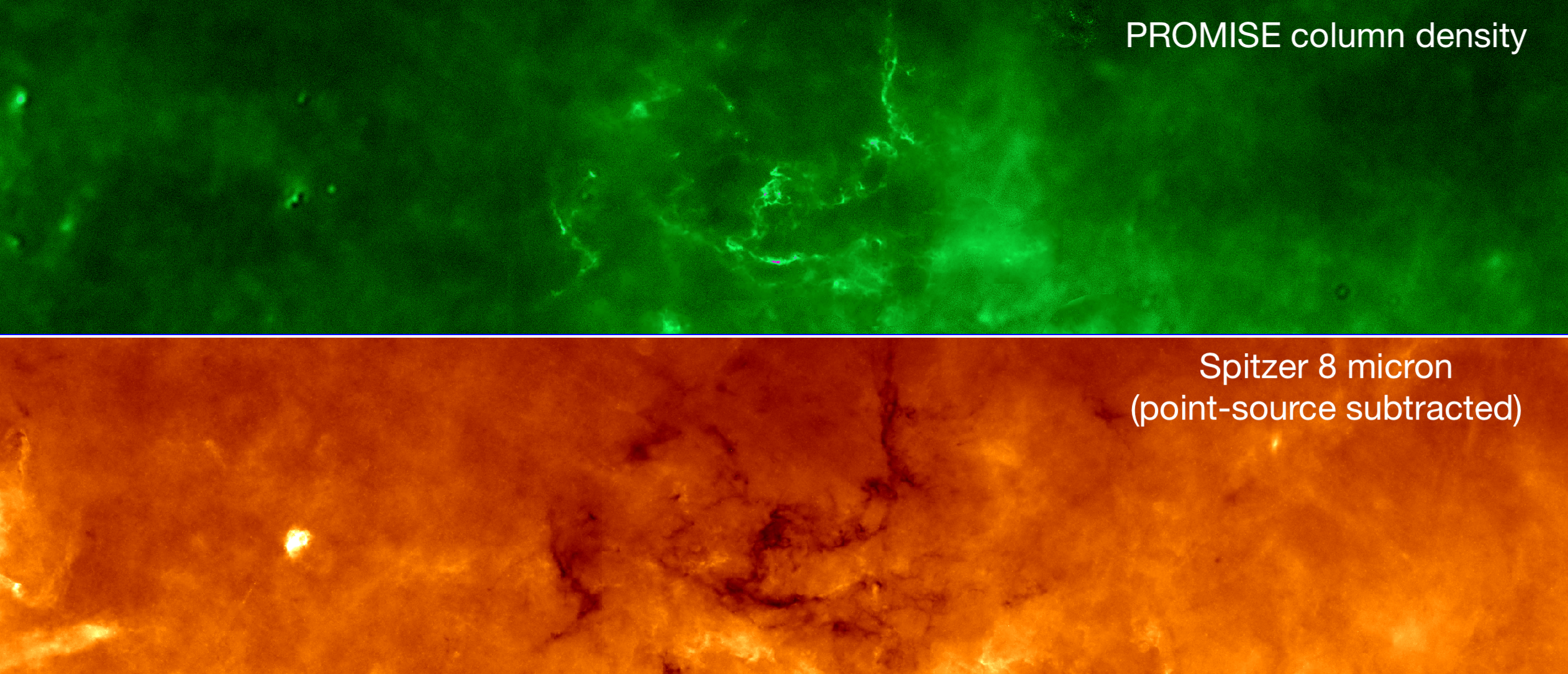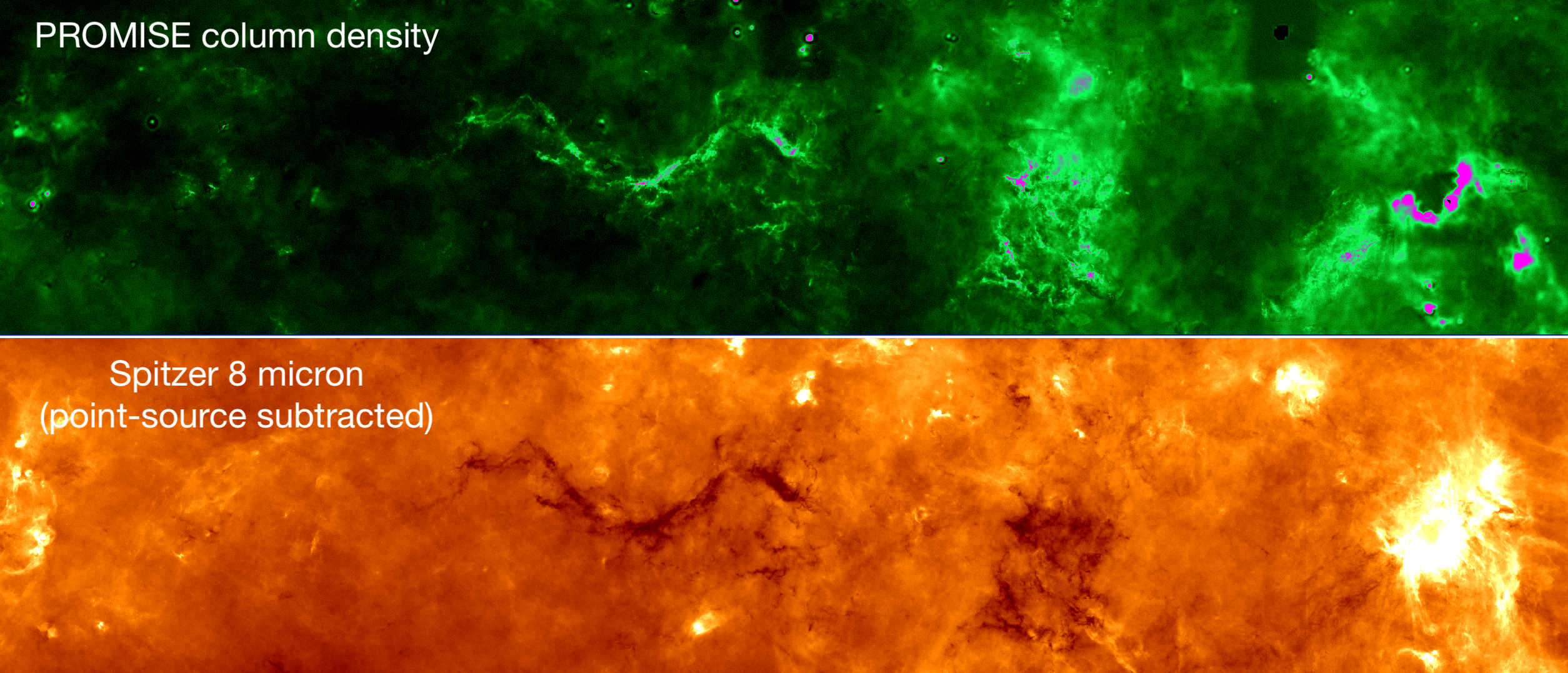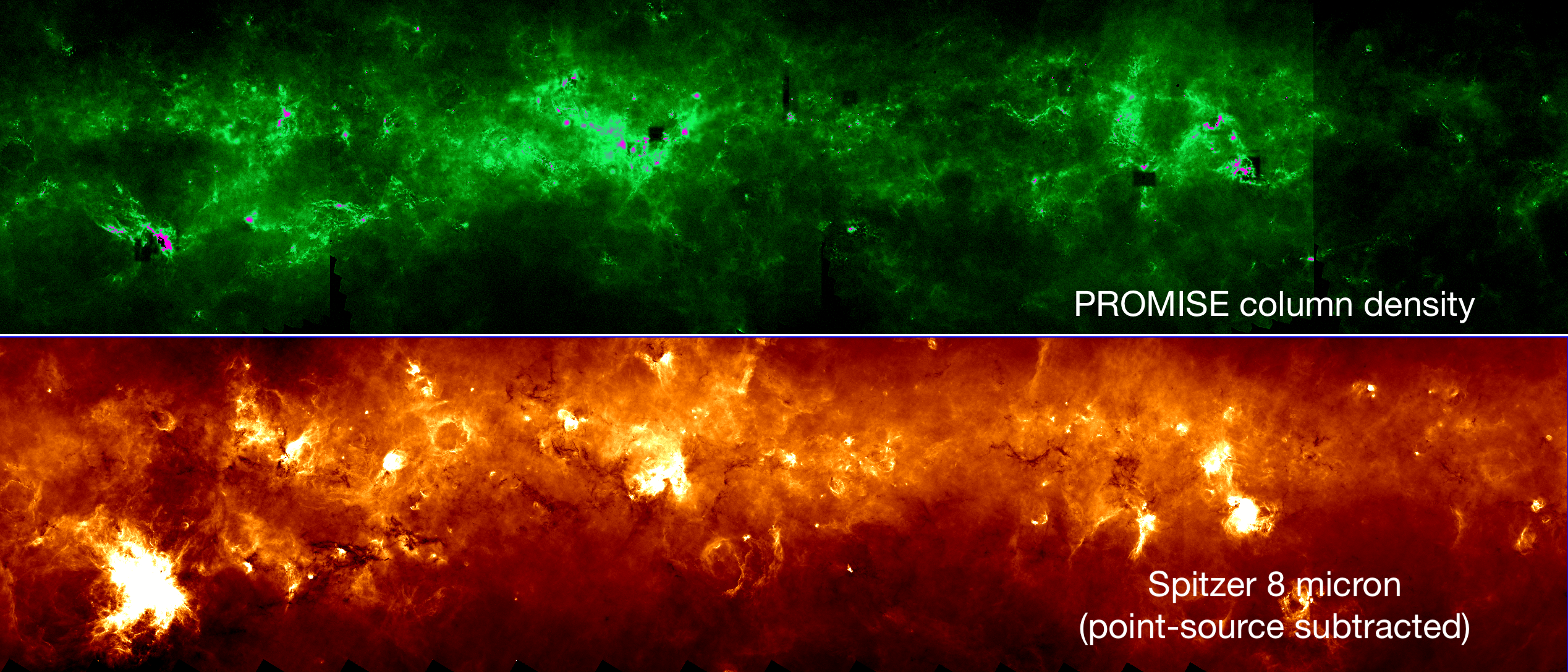 + Point-source subtracted Spitzer 8 micron data: link. Provides a view to the extended features in the Galactic plane without compact sources such as stars.